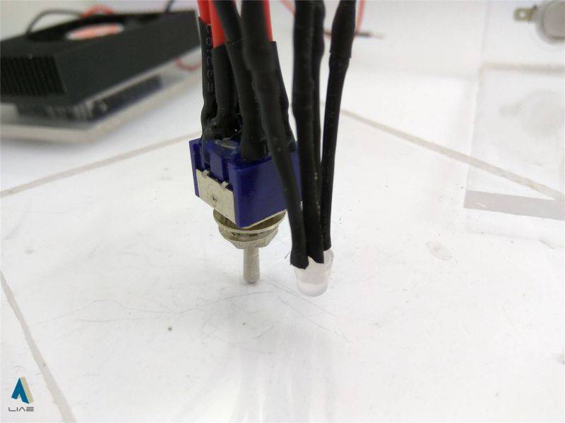 - Connect the wires of the cooling fins to the middle two pins of the toggle switch. Also use heat shrink tubing to prevent short circuits